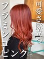 綺麗なフラミンゴピンクを出すために、全体をまずケアブリーチ☆その上から、私の特別ブレンドで作ったピラミンゴカラーをオンカラー♪根本から毛先までクリアな可愛い色に仕上がりました☆
