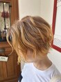 以前は縮毛矯正で収めていたけど、数ヶ月前から相談して、地毛を活かすスタイルへ☆矯正しない代わりに、ブリーチを使ってハイトーンのフレッシュスタイルへ♪毛先に実はイエロー、オレンジそれぞれのアクセントカラーを入れて、テンション上がる可愛さへ☆