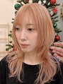 ブリーチ履歴があったので根本をリタッチ。ややオレンジの入ったピンクをクリアで絶妙に薄めて透明感のあるカラーに仕上げてます☆トップと顔まわりに入れたレイヤーがハイトーンとの相性が◎