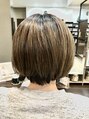 顎より上のラインのショートボブ。カラーは全体暗くして耳上にブリーチでバレイヤージュを入れてます。その後アッシュと少しだけブラウンを入れてます。バレイヤージュだと根元を染めてないので伸びてきても気にならないです。