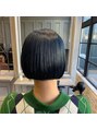 アンダーセクションをツーブロックにすることで、無駄な厚みやボブのラインが綺麗になります。そしてトップにブリーチし鮮やかなディープブルーを、そして耳にかけると暗い地毛が見える、普通のハイトーンに飽きてしまった方にオススメ