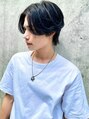センターパートウルフ/ブルーブラック/リバースパーマコンマヘア