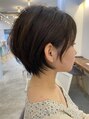 バックシルエットを前下がりに強調する事で、表面のボリュームを強調◎後頭骨から顎ラインの毛流れをデザインしてシャープな印象にすると小顔になります!前下がりなのがポイントです。責任をもって髪型でハッピーライフをお届け致しまスタイル