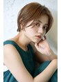 全体をほんのり前下がりにし、頬骨にかかる長め前髪で骨格と顔型のバランスをとった小顔に導くハンサムショートヘア。艶と柔らかさのあるシアーベージュカラーに、程よい束感と抜け感を出すスタイリングオイルで仕上げることで大人な色気もプラスしました。
