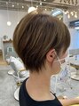 バックシルエットを前下がりに強調する事で、表面のボリュームを強調◎後頭骨から顎ラインの毛流れをデザインしてシャープな印象にすると小顔になります!前下がりなのがポイントです。責任をもって髪型でハッピーライフをお届け致します◎