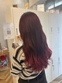 チェリーレッドピンクグラデーションブリーチダブルカラー