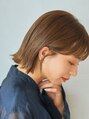 ミニボブ最大の特徴。カットラインが残るように毛量調整をし、赤みのすくないベージュカラーをオン。軽めにして隙間をあけた前髪は抜け感のある印象に。丸みを抑えた外ハネスタイルで少しカジュアルな雰囲気!ウェットな質感でタイトにスタイリング。