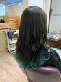 【Hairate本川越】裾カラー★オリーブグレージュ×水色カラー