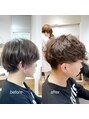 【気に入って頂いたスタイルはブックマークをしてお気軽にご提示ください】カットは程よい軽さを意識したカット。長持ちさせるように切ってるので襟足も短く刈り上げております。清潔感があるメンズスタイルです。動きはパーマでさらにでます。ビジネスでも!
