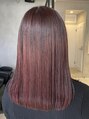 ワンカラーチェリーレッドカラー透け感透明感レイヤーカット