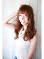 重めのベビーバングに大きめのなみウェーブで重すぎない印象に♪カラーは赤みを強めたブラウンで♪