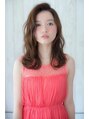 ふんわり感×透明感で可愛さUP☆なみウェーブと毛先のワンカールでやわらかさを出す「大人かわいい」くびれミディアム♪がっつり1:9で分ければ今風のふんわり前髪に!