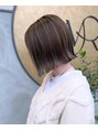 切りっぱなしのボブに細めのブリーチハイライトを全体的に入れることで立体感あるミルクティーベージュの遊びゴコロある大人カジュアルなスタイルです!