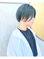 耳下は3ミリで刈り上げたあと、トップはふわっとかき分かれるツーブロックショートに一度ブリーチを施したあと明るめのスカイブルーをのせています!