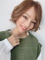 【気に入ったスタイルは「ブックマークする」ボタンを押して、ご来店時ご提示ください】イ小顔になれる似合わせカット。表面に段を入れた重軽スタイル。襟足は外ハネのパーマで躍動感を与えました。