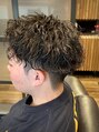 周りは6ミリのツーブロックで爽やかな印象にしつつ、強めのツイストパーマでカッコよく毛先を散らしてます!パーマ持ちもいいのが良いところ!スタイリングは強めのグリースで束感重視に!ハードワックスでもOK!