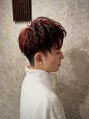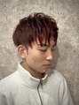 ハイライトで赤メッシュ!ザクザクの束感ショートにハイライトを入れる事でさらに立体感がでてカッコいいヘアスタイルです!黒髪ベースの赤メッシュなので映えること間違いなしのスタイルです!