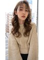 くしゃっとしたセンターパート。前髪のラフさと強めの大きいウェーブが個性を引き出してお洒落に♪シアーなベージュが肌を綺麗に見せてくれます。印象変えたい人に激推しです!
