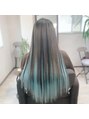 アッシュブラウン×水色×ブラック