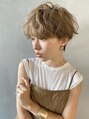 目上ギリギリのニュアンスマッシュをスタイリングでラフに動かし、大人カジュアルに。ショートでもトップを長く残すことで女性らしさもステイ。カラーは透けるベージュでやわらかく、エアリーな束感を引き立てます。