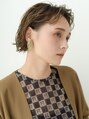 シースルーバングをオールバック気味に流しスタイリング次第でコンサバにもカジュアルにも合わせやすいトレンド感を出したパーマスタイル。20代 30代 40代 アンニュイ 切りっぱなし ロブ 抜け感 大人ガーリー フェミニティ フェザーバング 束感バング