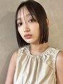 ナチュラルなストレートラインでラフな印象に。軽めな前髪は巻きすぎないのがトレンド。ウォームカラーは艶感もアップするので季節問わずオススメ。黒髪 丸みショート グレージュ 大人かわいい 小顔立体カット ワイドバング 前下がりボブ 小顔ヘア