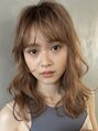 バングはワイドに設定し、レイヤーを入れて動きだしたトレンド感のあるパーマスタイル。韓国ヘア ハイライト 前髪カット イルミナカラー グレージュ シースルーバング くびれミディ 似合わせカット ウルフカット ラベンダー ウェットミディ