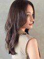 ゆるやかなウェーブで自然な動きを出し、落ち着いた雰囲気の中に女性らしさをプラス。カラーはほんのりくすみを感じるラベンダーベージュで、透明感と上品さを両立。肌前髪はセンターパートで大人っぽく、顔まわりのレイヤーが小顔効果を引き立ててる。