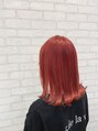 少し濃いめの、ピンクラベンダー。馴染みがいい色合いなので、オススメです。カットはウルフに、外ハネに仕上げてます。