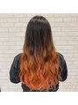 耳下からブリーチをしてグラデーションに!オレンジをオンカラー!上は暗めにすることでオレンジが引き立ちます♪巻くとキュートに(^^)