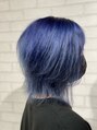 襟足を長めに残したウルフスタイル!ハイブリーチ後に、ネイビーブルーをON♪透明感抜群の仕上がりになります!