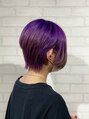 ハンサムショートで襟足をスッキリと。ハイブリーチ後にカラーミューズのバイオレットをON!高発色で深みのあるバイオレットカラーに♪