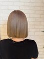 くすみベージュマロンベージュ前下がりボブ