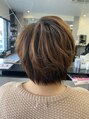 サイドは耳が少し出るくらいの短めスタイルですがフェイスラインを長めに残すことによりボーイッシュになりすぎないショートスタイルに ナチュラルなゆるふわ感を出したスタイリングで大人可愛いいヘアスタイルに仕上げました
