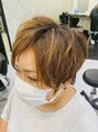 前髪は短めなアシンメトリーなベビーバング サイドは耳が出る短めショートスタイルもフェイスラインは長めにつくる事でボーイッシュになりすぎない可愛いい大人ショートに仕上げました