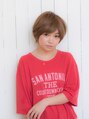 トップに長さを残しつつ、女の子らしい丸みを出したマッシュボブ。厚めバングも流すことですっきりと!顔の形を綺麗に見せる自信のカットです。