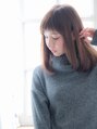 カットで作り込んでいるから乾かすだけで決まる、ナチュラルストレートセミディ。短めバングがキュートな印象に。