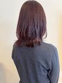 肌にすっと溶け込んでいくような、やわらかいカットラインのミディアムボブ。カラーはピンクブラウンで、艶をプラス