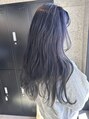 もともと赤みが強い髪色でしたが、しっかりブルーとバイオレットで透け感ネイビーブルーに◎やりたい色味などは遠慮なくご相談ください♪