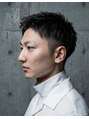 サイドと襟足はスッキリ刈り上げ、清潔感をキープ。強めのカールで動きを出すことで、黒髪でも重たく見えません。ON/OFF問わず楽しめ、スーツスタイルにもハマる大人の色気漂うショートスタイルです。