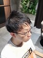 カットサイド、えり足刈り上げトップが立つようにレイヤーを入れ根元からセニングを行い束感を出しました。