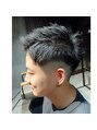 カット0.8ミリのフェイドスタイルトップにレイヤーを入れ束感がでるようにカットし前髪はアップバングに