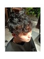 カット&パーマサイド、バックをツーブロックで刈り上げトップにレイヤーを入れ動きがでるようにカットし強めのパーマふんわりボリュームをだしました。