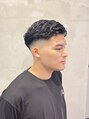 パーマは後ろに流れるようにかけ、刈り上げは低めのスキンフェード。直毛の方はこのスタイルにするにはパーマ必須です!