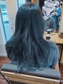 ベースはネイビーの6.5レベルもともと入っていたハイライトとインナーカラーの退色部分はネイビーの色味をプラス。普段はストレートスタイルなのでアイロンで巻いて仕上げています。