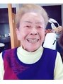 すっきりショートパ-マスタイル襟足は刈り上げています。チリつかずにしっかり滑らか手触りを保つようにパ-マをかけています。91歳には見えないお元気なお姿がさらにパーマで素敵に♪