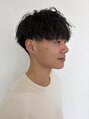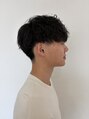 元々あるクセと前回かけた強めの波巻きスパイラルパーマを活かしてカットした王道マッシュスタイル!バックはナチュラルな刈り上げでフワッとしたスタイリングに馴染むようにし、サイドは気になるはちの膨らみを抑えやすくなるようにカットしました。