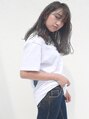 ミディアムレングスの切りっぱなしロブスタイルです。前髪もストレート感がある、うざバングにしました。ゆるーくパーマをかけて、カラーはダークシャドウアッシュです。モードかっこいい感じがGOODです。