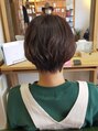 毛先に残ったパーマを生かして、フワっとした感じに仕上げました。ストレートの部分とパーマの部分が自然になじむようにカットして、襟足はスッキリ。トップはふんわり。とメリハリのあるショートスタイルです。