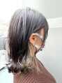 ミディアムレングスに顔回りを包みこみようにレイヤーをいれアクセントに。耳かけした時に旬なグレー系でインナーカラーをいれてます。